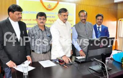 Photo Caption : Justice Huluvadi G Ramesh, President, Karnataka State Consumer Disputes Redressal Commission launching the website of "Online E Filing" at Basava Bhavan, also seen are BH Anil Kumar, Additional Chief Secretary Department of Food and Civil Supplies Consumer Affairs , AP Ranganath, President, Advocates Association, in Bengaluru on Thursday 4th February 2021