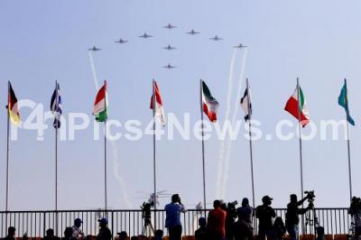 Photo Caption : Indian Air Forces aerobatic team Suryakiran performs during last day of 13th edition AERO INDIA 2021 at Yelahanka Air Base, in Bengaluru on Friday 5th February 2021