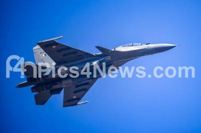 Photo Caption : Sukhoi fighter jet performing on the last and third day of the Aero India 2021 at Yelahanka air base, in Bengaluru on Friday 5th February 2021