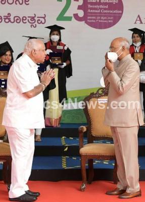 Photo Caption : President of India Ram Nath Kovind and Chief Minister of Karnataka BS Yediyurappa seen during Rajiv Gandhi University of Health Sciences 23rd Annual Convocation, in Bengaluru on Sunday 7th February 2021