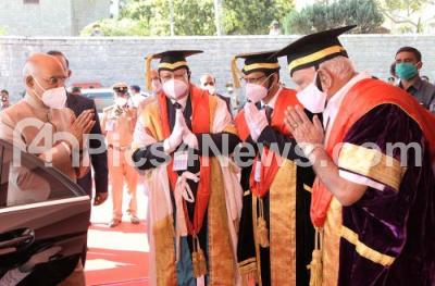 Photo Caption : President of India Ram Nath Kovind being welcomed by Chief Minister of Karnataka BS Yediyurappa during Rajiv Gandhi University of Health Sciences 23rd Annual Convocation, in Bengaluru on Sunday 7th February 2021