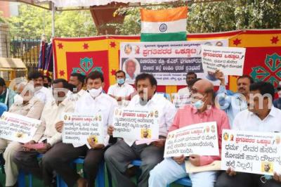 Photo Caption : Supporters of Prof. KS Bhagawan protesting against attack on KS Bhagawan, in Bengaluru on Thursday 11th February 2021