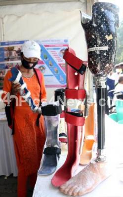 Photo Caption : Visitors at the exhibition stalls of handicap equipment during the Specially Abled People and Senior Citizens Day program at Ravindra Kalakshetra, in Bengaluru on Thursday 11th February 2021