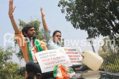 Photo Caption : Members of Youth Congress protesting against Central BJP government for hike in fuel and LPG prices, in Bengaluru on Wednesday 17th February 2021