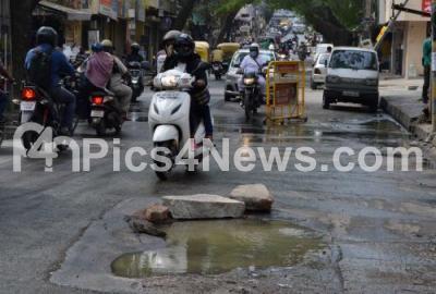Photo Caption : A manhole at Jayanagar 1st Block was overflowing and was causing problems to the motorists, in Bengaluru on Wednesday 17th February 2021