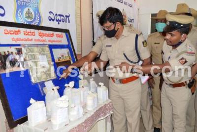 Tilaknagar police personnel seen showcasing the recovered valuables during the property parade program at Tilaknagar police station, in Bengaluru on Wednesday 17th February 2021