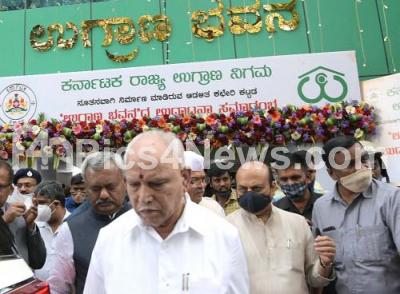 CM BS Yediyurappa inaugurated the newly constructed "Ugrana Bhavan" (Warehouse) of Karnataka State Warehousing Corporation at Primrose Road, also seen are Home Minister Basavaraj Bommai, Minister ST Somashekar and others, in Bengaluru on Thursday 18th February 2021