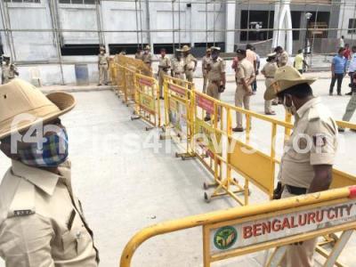 Photo Caption : Tight police security at Yeshwantpur Railway station during the farmers nationwide Rail Roko protest rally, in support of farmers agitation against the Central Government farm laws, in Bengaluru on Thursday 18th February 2021