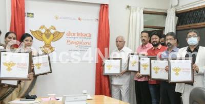 Chief Minister Shri BS Yediyurappa unveils the 13th Bangalore International Film Festival at Home office Krishna, also seen are Minister of Information and Public Relations CC Patil, Karnataka Film Academy President Sunil Puranik, Department General Secretary Anjum Parvez, Information and Public Relations Department Ayukra Dr PPS Harsha and others, in Bengaluru on Friday 19th February 2021