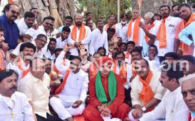 Photo Caption : Sri Jaya Mrityunjaya Swamiji and Panchamasali community people staging dharan at Freedom Park demanding 2A reservation for Panchamasali community, in Bengaluru on Monday 22nd February 2021