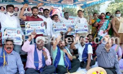 Photo Caption : Members of Karnataka Dalita Sangharsha Samiti staging dharan at MG Statue, Anand Rao Circle to press their various demands, in Bengaluru on Thursday 25th February 2021