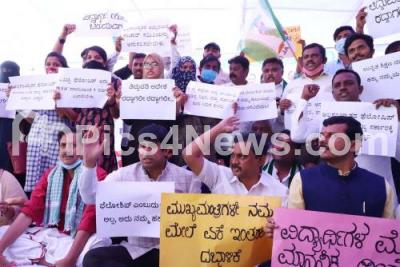 PhD students along with JDS leaders staging a protest against State government at Gandhi statue, Anand Rao Circle, in Bengaluru on Thursday 4th March 2021