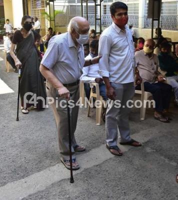 Photo Caption : Senior citizens, recipients of Covid-19 Vaccine turned up at KC General Hospital, senior citizen were administered with the Covid-19 vaccine by health officers, during the second phase of the countrywide inoculation drive, in Bengaluru on Thursday 4th March 2021