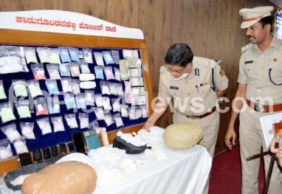 Photo Caption : Police Commissioner Kamal Panth addressing a press conference on the seized drugs worth Rs 4 Crore during a press conference at Police Commissioner office, in Bengaluru on Friday 5th March 2021
