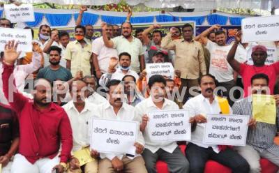 Photo Caption : Members of Private School Vehicle drivers Association staging a protest at Gandhi Statue, Anand Rao Circle, to press their various demands, in Bengaluru on Saturday 6th March 2021