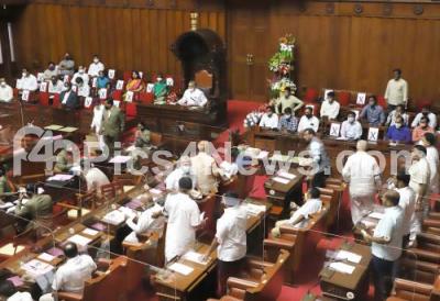 Photo Caption : Congress MLCs boycott the Council Session at Vidhana Soudha, in Bengaluru on Monday 8th March 2021
