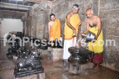 Photo Caption : Shivalingas and others deities are been cleaned for the upcoming Mahashivaratri Festival at Sri Trineshwaraswamy Temple in Mysore Palace premises, in Mysore on Wednesday 10th March 2021