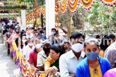 Photo Caption : Devotees performing puja at Kadu Malleshwara temple, on the occasion of Maha Shivaratri festival, in Bengaluru on Thursday 11th March 2021