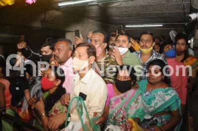 Photo Caption : Devotees performing puja to the gold face mask of lord Shiva at Trineshwaraswamy Temple, on the occasion of Maha Shivaratri festival, in Mysuru on Thursday 11th March 2021