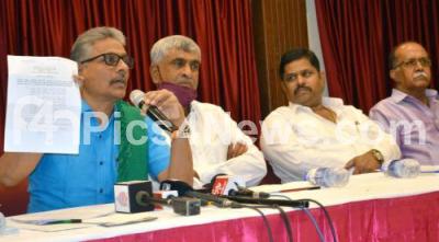 Photo Caption : Kodihalli Chandrashekar, State President, Karnataka Rajya Raitha Sangha and Hasiru Sene addressing a press conference on Dr. Shivarama Karantha Layout at a private hotel, also seen are Krishnappa, Shekar and others, in Bengaluru on Saturday 13th March 2021