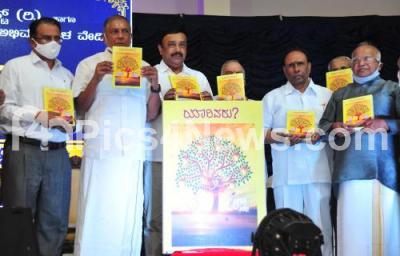 Photo Caption : MLA Ravi Subramanya with Prof HS Lakshminarayana Bhat, Prof SC Sharma and others releasing the book “Yaarivaru†at Yelachenahalli, in Bengaluru on Sunday 14th March 2021
