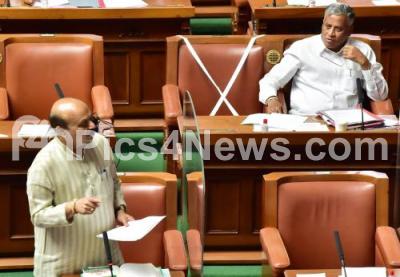 Photo Caption : Home Minister Basavaraj Bommai addressing during Assembly Session at Vidhana Soudha, in Bengaluru on Monday 22nd March 2021