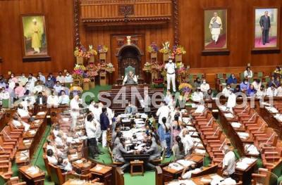 Photo Caption : Congress MLAs protesting during Assembly Session at Vidhana Soudha, in Bengaluru on Wednesday 24th March 2021