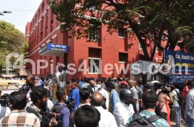 Photo Caption : Media person and crowd gathered at Magistrate Court following woman in the CD scandal who will appear in front of the judge, in Bengaluru on Tuesday 30th March 2021