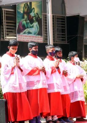 Christian devotees pray at St Marys Basilica Church, Shivajinagar to mark the Good Friday, in Bengaluru on Friday 2nd April 2021