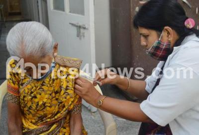 Photo Caption : Health workers administering the COVID-19 vaccine to people at a hospital during the Vaccination Drive, in Bengaluru on Monday 5th April 2021