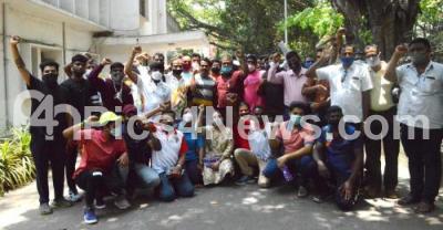 Event Description : Members of Karnataka Swimming Association staged a protest against the Karnataka State Governments decision to keep the Swimming pools closed in the light of rising covid-19 cases, in Bengaluru on Monday 5th April 2021