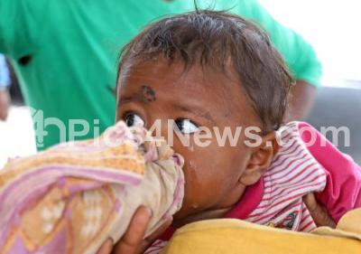 Photo Caption : A kid crying and drinking water at Majestic bus stand during the BMTC and KSRTC bus workers indefinite strike from today and to protest against the governments failure to implement a salary under the 6th Pay Commission for the RTC workers, in Bengaluru on Wednesday 7th April 2021