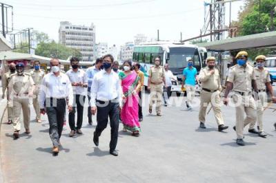 Photo Caption : BMTC and KSRTC officials inspection at Majestic bus stand during the BMTC and KSRTC bus workers indefinite strike from today and to protest against the governments failure to implement a salary under the 6th Pay Commission for the RTC workers, in Bengaluru on Thursday 8th April 2021