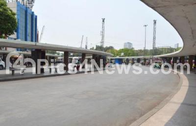 Photo Caption : Busy Majestic bus stand wears a deserted look during the BMTC and KSRTC bus workers indefinite strike from today and to protest against the governments failure to implement a salary under the 6th Pay Commission for the RTC workers, in Bengaluru on Friday 9th April 2021
