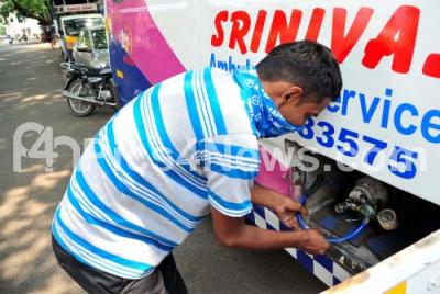 Oxygen cylinders being refilled in the Ambulance during the Coronavirus Pandemic, in Bengaluru on Wednesday 21st April 2021
