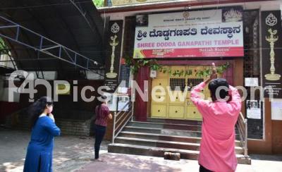 Photo Caption : Devotees pray from outside the temple, as the Dodda Ganapahti Temple is closed, ahead of night curfew and Weekend curfew to curb the spread of coronavirus, in Bengaluru on Thursday 22nd April 2021
