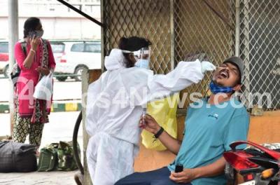 Photo Caption : Health officers collect swab samples for COVID-19 tests amid surge in coronavirus cases, in Bengaluru on Thursday 22nd April 2021