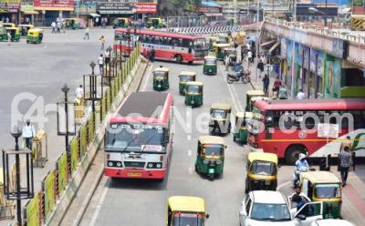 Photo Caption : Some BMTC and KSRTC buses resume service for public at Majestic bus stand as the BMTC and KSRTC bus workers indefinite strike of road transport corporations (RTC) employees entered its 16th day, in Bengaluru on Thursday 22nd April 2021