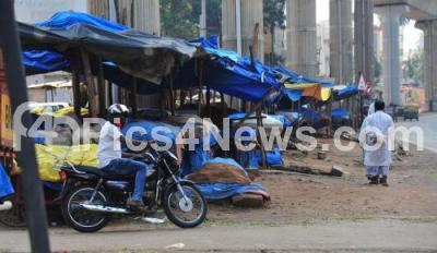 Photo Caption : Deserted look at Dasarahalli market during the state wide weekend lockdown in the wake of the 2nd wave of COVID-19 pandemic, in Bengaluru on Saturday 24th April 2021