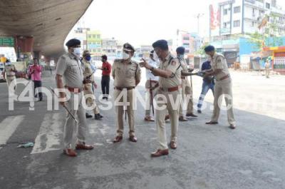 Photo Caption : Police Commissioner Kamal Pant and Police officials at KR Market during the state-wide weekend lockdown in the wake of the 2nd wave of COVID-19 pandemic, in Bengaluru on Saturday 24th April 2021