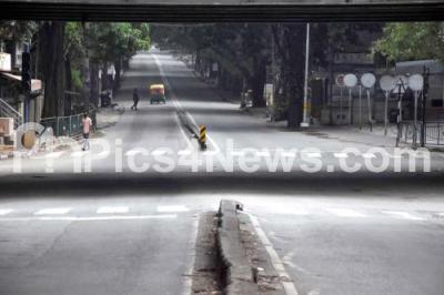 Photo Caption : Deserted Shivananda Circle during the state-wide weekend lockdown in the wake of the 2nd wave of COVID-19, in Bengaluru on Sunday 25th April 2021
