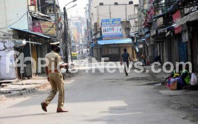 Photo Caption : Deserted Avenue road during the state-wide weekend lockdown in the wake of the 2nd wave of COVID-19, in Bengaluru on Sunday 25th April 2021