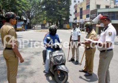 Police Check post during Coronavirus lockdown in the wake of the 2nd wave of COVID-19, in Bengaluru on Thursday 29th April 2021