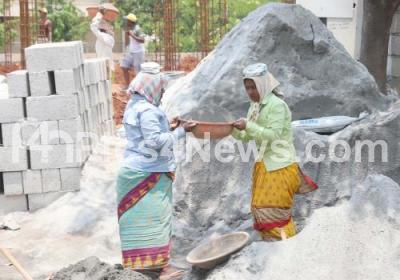 Photo Caption : Daily labourers work at a building construction site on May Day or Labour Day, which is celebrated to respect the achievements of Labours or working class, in Bengaluru on Saturday 1st May 2021