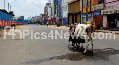 Photo Caption : Deserted Kalasipalyam Road during lockdown in the wake of the 2nd wave of COVID-19, in Bengaluru on Monday 3rd May 2021