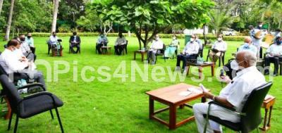 Photo Caption : Chief Minister of Karnataka BS Yediyurappa meeting with oxygen suppliers during lockdown in the wake of the 2nd wave of COVID-19, in Bengaluru on Monday 3rd May 2021
