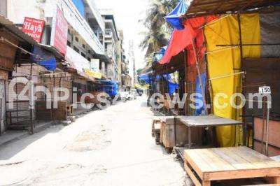 Photo Caption : Deserted Shivajinagar Road during Coronavirus lockdown in the wake of the 2nd wave of COVID-19, in Bengaluru on Tuesday 4th May 2021