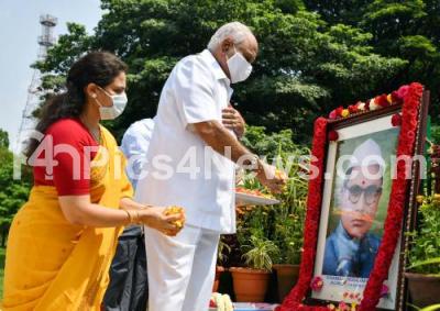 Photo Caption : CM BS Yediyurappa paid floral tribute to the Former CM KC Reddy portrait on the occasion of his birth anniversary at Vidhana Soudha, in Bengaluru on Wednesday 5th May 2021