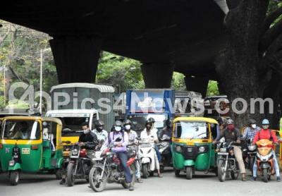Photo Caption : Traffic jam at Sirsi circle during Coronavirus lockdown in the wake of the 2nd wave of COVID-19, in Bengaluru on Thursday 6th May 2021