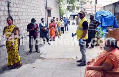 Photo Caption : People waiting in queue at City Primary Health Centre Chamarajpet during COVID-19 vaccination drive, in Bengaluru on Thursday 6th May 2021